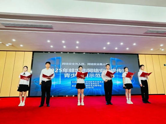 讲座结束后,安徽机电技师学院的同学们带来《网络晴空,青春守护》主题朗诵,用饱满的热情、铿锵有力的语调,讲述了青少年对安全网络环境的期待,呼吁大家共同抵制网络不良信息、维护网络秩序。