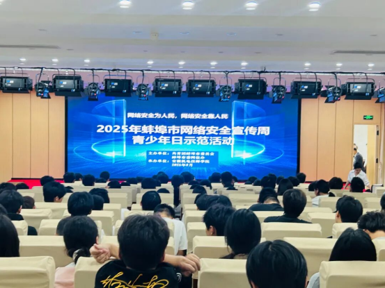 为深入贯彻落实网络安全相关法律法规,提升青少年群体的网络安全意识与防护技能,9月19日上午,由市委网信办、团市委联合主办,安徽机电技师学院承办的2025年蚌埠市网络安全宣传周青少年日活动顺利举行,安徽机电技师学院师生代表300人现场参与活动。