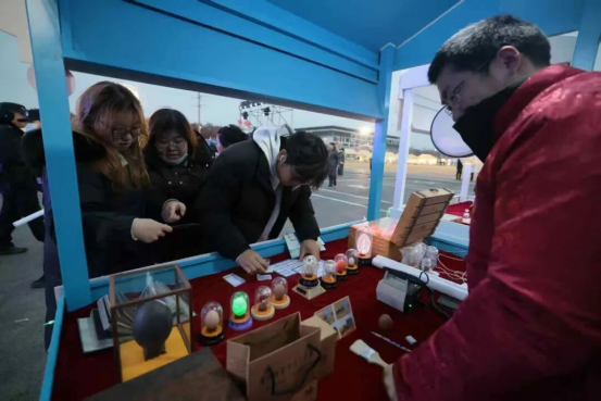 音乐汇现场设有非遗展区、大学生文创展区、大学生就业信息发布区,丰富活动内容。特别是非遗展区发放打卡任务,集满印章可兑换小礼品,现场观众可边打卡边欣赏节目,提升活动参与度与分享率。