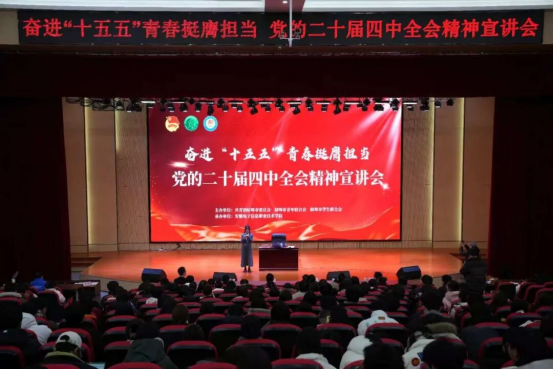 12月24日,奋进“十五五”青春挺膺担当——党的二十届四中全会精神宣讲会成功举办。活动由团市委、市青联、市学联主办,安徽电子信息职业技术学院承办。安徽电子信息职业技术学院党委委员、副院长冯兴祥,团市委副书记蒋晓妍,安徽电子信息职业技术学院学生处处长乔刚,市青联委员、市学联主席团成员、在蚌服务的西部计划志愿者以及师生代表共计450人参加。