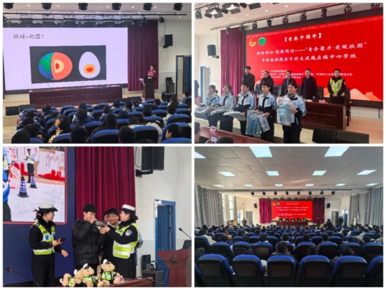 “青企聚力·爱暖校园”青联组织服务千村行动在魏庄镇中心学校成功举办。在启动仪式上,安徽省地勘局第一水文院、市青企协向学校捐赠物资,随后,怀远县委副书记、魏庄镇党委书记张亮宣布活动开始。活动现场,市公安局交通管理支队干警进行了寒假交通安全宣讲,为即将开启假期生活的孩子们送上实用的安全“必修课”;省第一水文院的青年专家开设了“诗文中的‘矿物密码’”科普课堂,为学生们呈上了一堂生动且富有教益的综合教育课程。