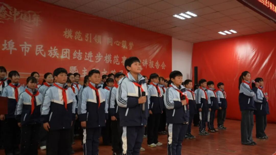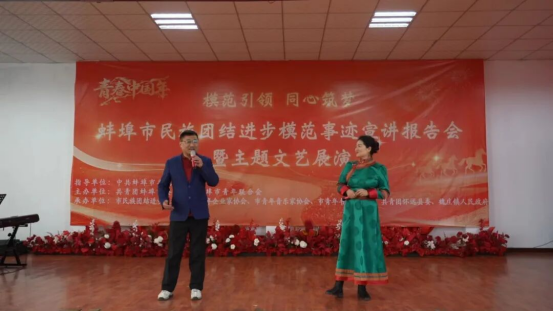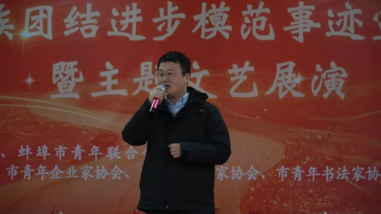蚌埠市民族团结进步模范事迹宣讲报告会暨主题文艺展演同步举办。市委统战部副部长柴启明,怀远县委副书记、魏庄镇党委书记张亮,安徽省第一水文院党委书记、院长郑立博,团市委副书记潘俞伊、蔡明星等出席。活动在市青年书法家协会书写春联的浓郁年味中拉开序幕,随后以民族歌舞、乐器演奏、诗歌朗诵等多种艺术形式,展示了各民族文化互鉴融通、美美与共生动局面。其间,三位在全省民族团结进步表彰大会上的获奖代表分别围绕青年民族团结工作、社区民族工作实践、基层服务等主题进行了宣讲,生动诠释了“同心筑梦”的深刻内涵。