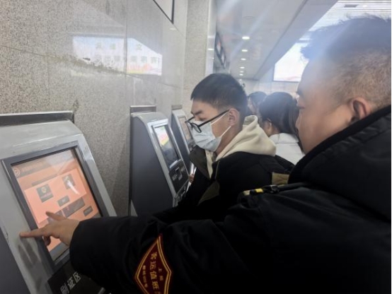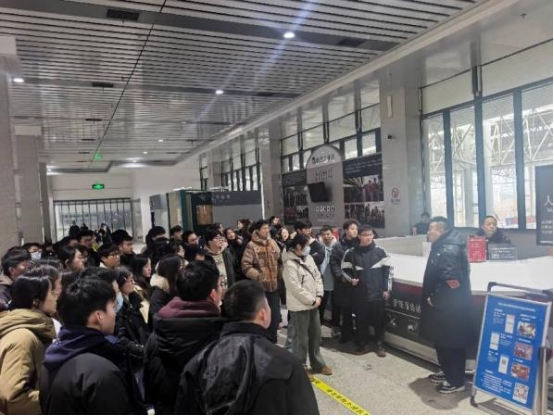 培训伊始,青年志愿者们前往蚌埠站开展现场参观。工作人员带领志愿者们走访各服务岗位,详细介绍候车大厅、检票口、咨询台等关键区域的设施布局、功能用途及岗位分工,青年志愿者们直观了解了服务场景,进一步熟悉岗位环境,为后续开展志愿服务筑牢基础。