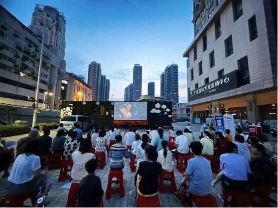活动当天,汇金小区广场早早便热闹起来。社区青年工作人员提前布置场地,为居民营造了舒适的观影环境。傍晚时分,居民们陆续到场,大家有序就座,随着影片画面的展开,《我和我的父辈》中四个不同时代的父辈故事缓缓呈现,从革命年代的无畏牺牲,到建设时期的艰苦奋斗,再到改革开放后的勇于创新,一个个感人至深的情节,深深打动了在场的每一位观众。不少居民在观影过程中热泪盈眶,仿佛置身于那段波澜壮阔的历史岁月,深刻感受到了父辈们为国家发展、民族复兴所付出的艰辛努力和崇高精神。