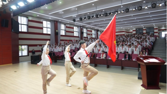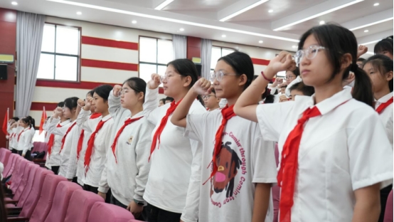 建队仪式在激昂的出旗曲中拉开帷幕。少先队员们齐唱队歌,在星星火炬的指引下,重温入队誓词,铿锵有力的誓言回荡在校园上空,展现了新时代少先队员坚定的理想信念和昂扬的精神风貌。