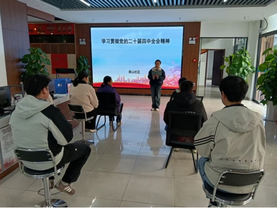 11月25日,南山社区团支部组织青年团员开展学习贯彻党的二十届四中全会精神专题宣讲交流活动。青年宣讲员围绕党的二十届四中全会的重大意义、核心要义与精神实质作了系统讲解,重点解读了坚持和完善中国特色社会主义制度、推进国家治理体系和治理能力现代化等决策部署,并结合青年成长与基层治理实践进行了生动阐述,引发在场团员强烈共鸣。在随后的交流环节中,青年团员踊跃发言,结合学习、工作和生活实际分享心得体会。大家纷纷表示,通过此次学习,对全会精神有了更深刻的理解,进一步增强了责任感和使命感,明确了今后努力的方向。