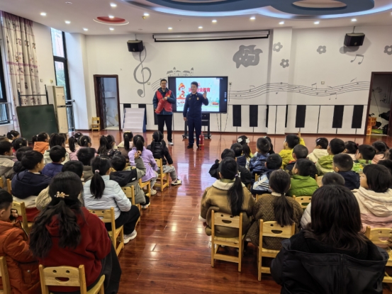 “小朋友们,你们知道遇到火灾时,最先要做的事情是什么吗?”宣讲活动伊始,消防宣传员便以亲切的提问打开了孩子们的话匣子。面对提问,孩子们纷纷高高举起小手,用稚嫩的声音说出自己的答案,现场互动氛围瞬间热烈起来。为让宣讲内容更贴合幼儿认知,琥珀社区团支部协助消防宣传员将专业术语转化为“火灾小怪兽”等趣味表达。宣讲中,志愿者们配合消防员展示卡通消防海报,用肢体动作模拟火灾危害,共同向孩子们讲解火灾隐患、日常用火用电安全等知识,着重强调“不玩火、不触摸电源插座”等核心要点,让知识传递更具感染力。