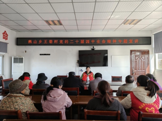 “咱们村里的养老服务越来越好,这正是全会说的‘增进民生福祉’的具体体现!”11月26日,燕山乡王巷村会议室里气氛热烈,一场由村团支部组织的学习贯彻党的二十届四中全会精神专题宣讲正“接地气”开讲。