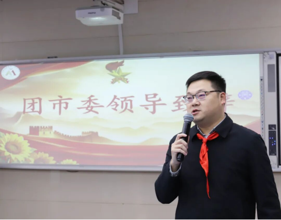 团市委副书记潘俞伊在讲话中,向大会的召开表示热烈祝贺,肯定了蚌埠第一实验学校少先队工作取得的丰硕成果。他寄语全体少先队员牢记嘱托,争做信念坚定、理想远大的新时代好队员,希望学校少工委聚焦主责主业,筑牢为党育人根基,鼓励辅导员老师潜心育人,当好少年儿童成长的引路人,凝聚家校社协同育人合力。