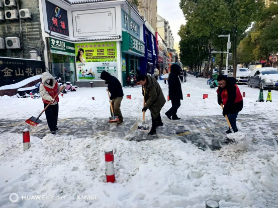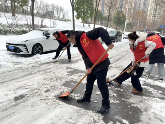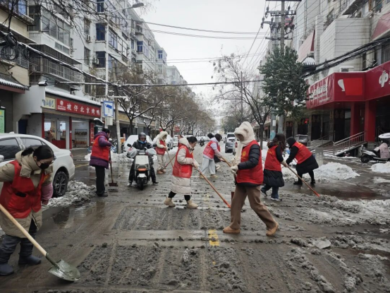 黄庄街道团工委、青年突击队、各社区团支部参与铲雪志愿活动。