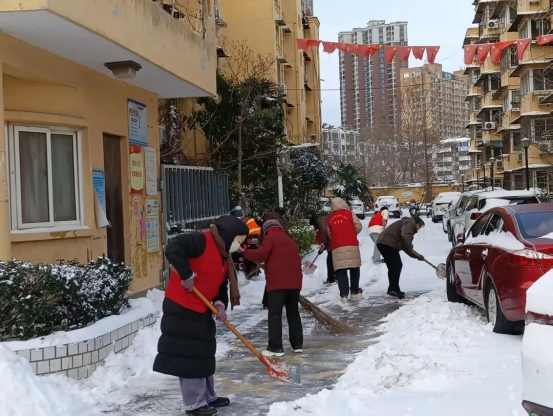 胜利街道团工委、青年突击队、各社区团支部参与铲雪志愿活动。