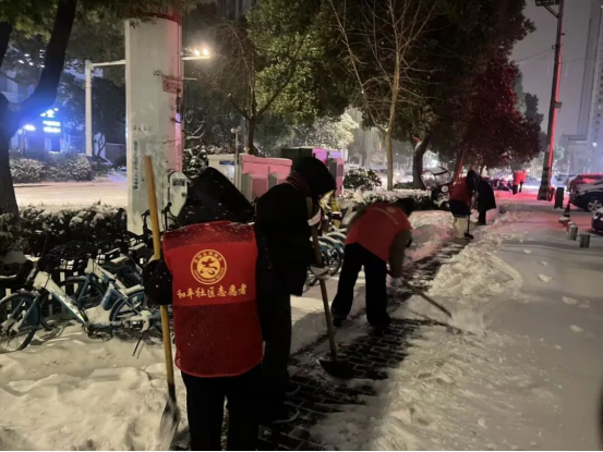 龙湖新村街道团工委、青年突击队、各社区团支部参与铲雪志愿活动。