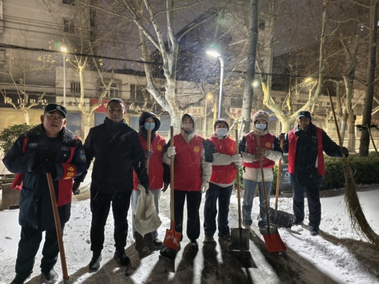 当日傍晚,降雪强度持续加大,小区主干道、单元门口积雪厚度已达10厘米,道路结冰风险突出。社区团支部第一时间启动应急响应机制,组建由团员青年、物业人员组成的15人突击队,按照“先主干、后支路,先单元、后巷道”的原则,集中力量清理单元门出入口、主干道、消防通道及坡道等重点区域。寒夜之中,青年志愿者们手持雪铲、推雪板,迎风战雪、分工协作,热火朝天的除雪场面驱散了冬夜的寒意。