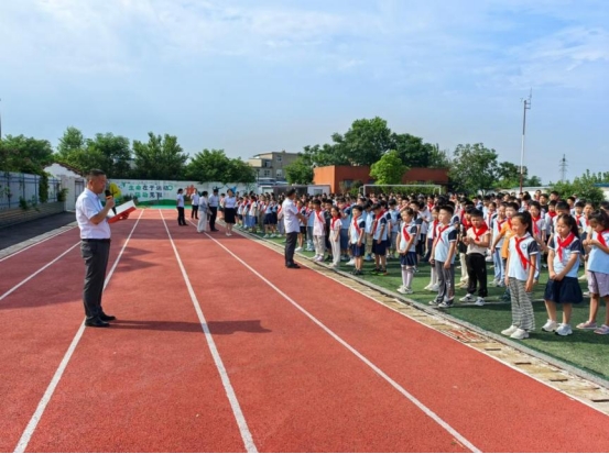 学校党支部书记在开学典礼上以《弘扬抗战精神争做时代新人》为题,给全体少先队员们上了一堂深刻而富有力量的“开学第一课”。学校少先队大队部号召全体队员从历史的回响中汲取磅礴力量,以更加昂扬的姿态、更加饱满的热情、更加坚实的步伐,共同书写无愧于时代、无愧于历史的新篇章。