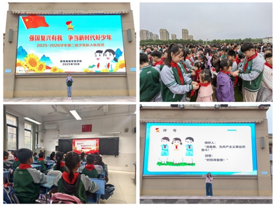 蚌埠第三实验学校兴华校区隆重举行了“强国复兴有我,争做新时代好少年”2025年少先队建队纪念日主题活动。在大队辅导员的带领下,新队员们面向队旗,庄严宣誓:“我是中国少年先锋队队员,我在队旗下宣誓:我热爱中国共产党,热爱祖国,热爱人民,好好学习,好好锻炼,准备着,为共产主义事业贡献力量!”