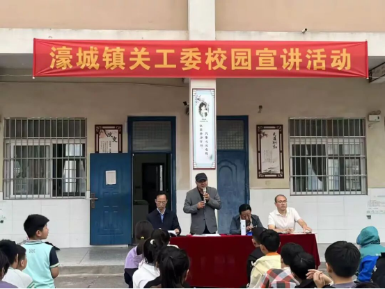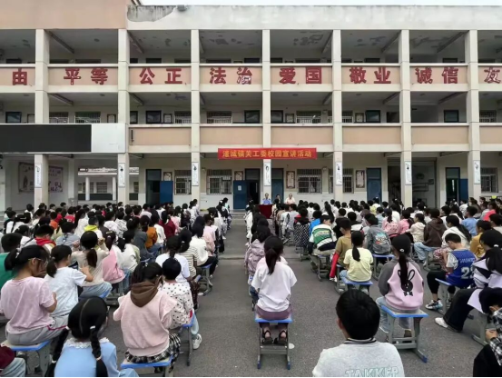 下午三时许,宣讲活动正式开始。首先,固镇县华巷小学校长徐宏伟走上台,向全体师生隆重介绍了此次活动的嘉宾 —— 濠城镇关工委常务副主任丁玉群、濠城镇文化站站长兼关工委副主任邢波,以及濠城镇司法所工作人员刘保明。徐校长在介绍中提到,三位嘉宾不仅有着丰富的工作经验,更心系少先队员成长,此次专程来到学校,就是为了给少先队员们带来 “精神养分”,希望大家认真聆听、积极思考,将所学所悟融入日常学习与生活。