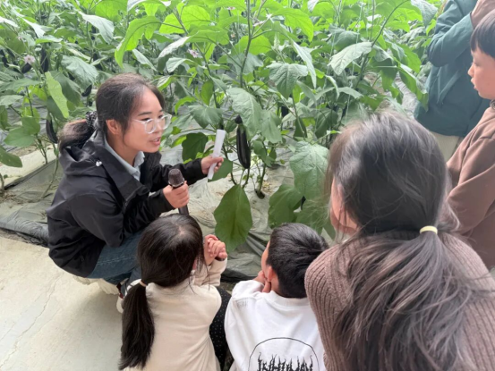 活动伊始,科普老师利用园内的资源,向同学们讲解了辣椒、茄子、黄瓜等常见蔬菜的生长习性、生长周期及果实形态特点。