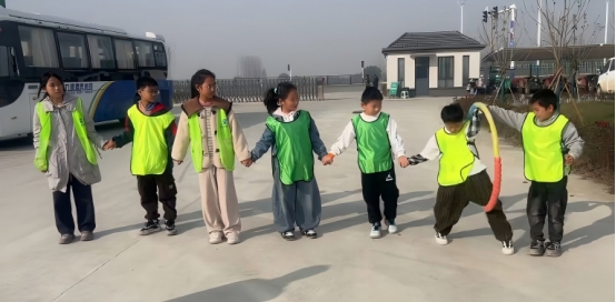 公开课结束后,活动进入了轻松愉快的户外拓展环节。首个拓展项目“桃花朵朵开”迅速点燃了现场气氛。该项目主要锻炼孩子们的反应速度、应变能力及身体协调性。孩子们在指令下快速反应,灵活组队,现场欢声笑语不断,在游戏中有效提升了自身的快速判断与行动能力。