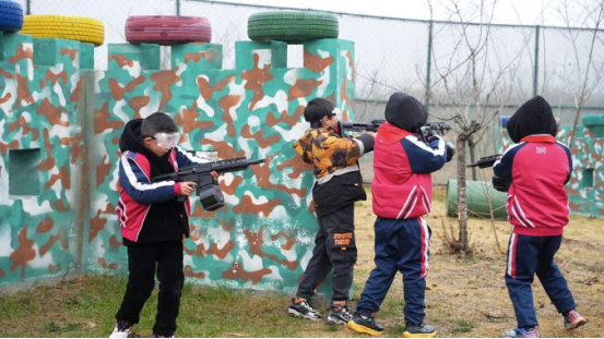 紧张而又刺激的“真人对战”模拟枪战游戏紧随其后,将现场气氛推向首个高潮。孩子们化身为小小“战士”,在安全规范的模拟场景中制定策略、分工协作、灵活应对。这不仅是一场体力与反应速度的较量,更是一堂生动的实践课,让他们深刻领悟到信任队友、执行决策的重要性。