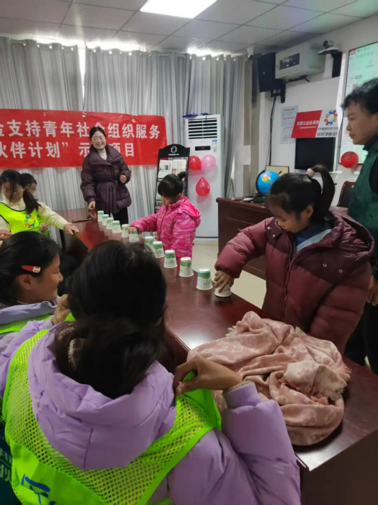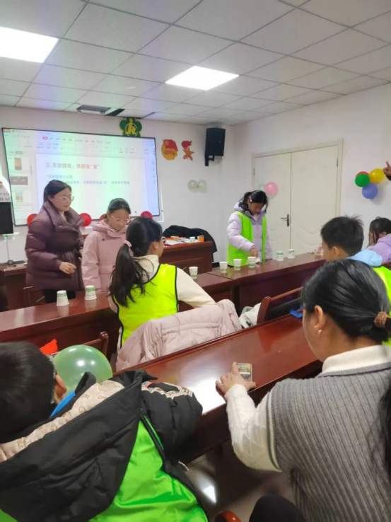 热闹的互动游戏“纸杯收蛋”随即开场。青少年们分组协作,小心翼翼保护杯中之“蛋”,默契提醒同伴保持平衡,趣味满满的游戏,既锻炼了专注力与团队协作能力,又让大家在竞技中收获友谊与快乐,节日氛围愈发浓厚!