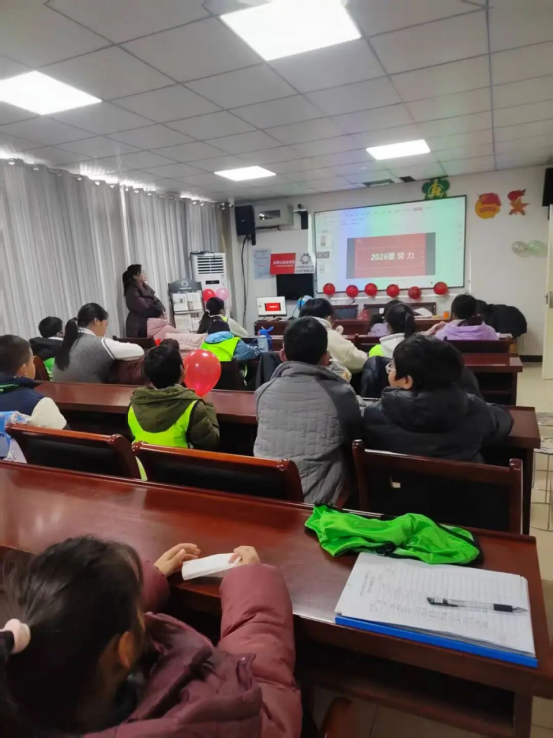 活动伊始,友爱社工中心向平老师带领全体青少年共唱国歌,激昂的国歌声响彻现场,爱国之情在大家胸中升腾。随后,科普短片带领青少年穿越古今,从古代岁首祭祀的庄重,到现代新年庆典的热闹,让大家深入了解元旦的由来与习俗,感受节日背后的文化底蕴。