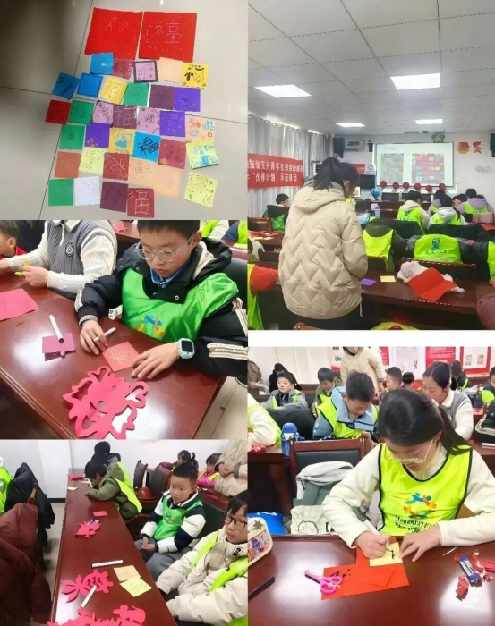 分享结束后,崔老师带领大家开展画百福祈平安活动。她细致讲解“福”字内涵:“福是国人对美好生活的向往,百福更寓意福气满满、好运连连。”青少年们发挥创意,用画笔勾勒出形态各异的“福”字,一张张童趣满满的作品汇聚成“百福图”,承载着大家对新年的美好祈愿。