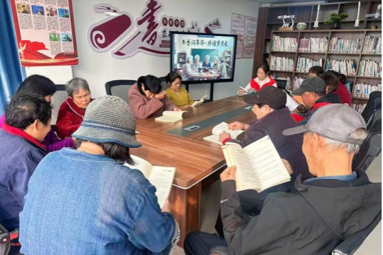 活动现场暖意融融,参加活动的社区居民在志愿者的引导下穿梭在书架间,仔细挑选着感兴趣的书籍。随后,大家围坐在一起,或共读历史、品悟名著,或研读养生知识,不时交流着读书时的所感所想,欢声笑语间,氛围显得十分融洽和睦。居民张阿姨高兴地说:“大家在一起读书,不仅增长了知识,还增添了许多生活乐趣。”