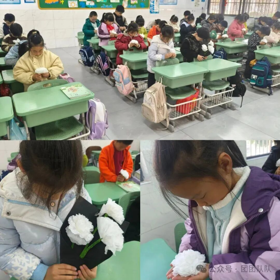 一年级的预备队员以 “我为烈士敬献小白花” 的方式寄托哀思。孩子们用稚嫩的双手凝聚敬意,一朵朵小白花,成为孩子们心中对英烈最纯粹的纪念。