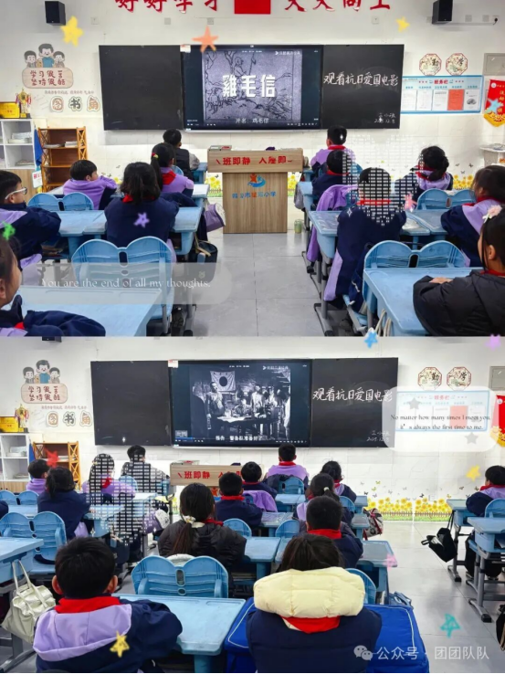 星河小学少先队组织少先队员代表开展“红领巾的光影记忆”爱国主义观影活动。队员们或齐聚报告厅,或在班级教室,专注观看抗日爱国电影,在黑白光影与震撼画面中重温革命岁月,感悟和平的珍贵。此次观影活动以直观生动的方式,让红色基因融入少年血脉,引导学生铭记历史、缅怀先烈,将爱国主义情怀深深植根心中。