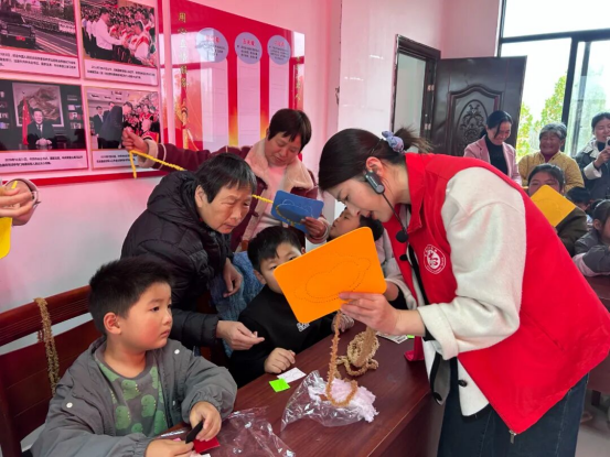 活动现场,志愿者分享了亲子共读技巧,帮助家长建立家庭阅读互动好习惯,并通过情景演绎的方式呈现绘本故事,引导儿童理解故事内容,培养儿童的共情能力与表达能力,激发他们的阅读兴趣。在“亲子共读”环节,家长与孩子们依偎在一起,共享亲密无间的阅读时光。活动的最后,家长与孩子们拿起针线,通过DIY针线画将阅读体验具象化,亲手制作出本次活动独一无二的纪念品。