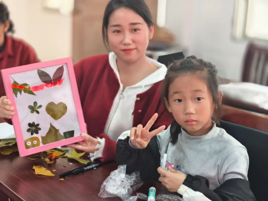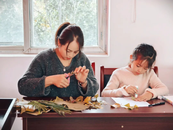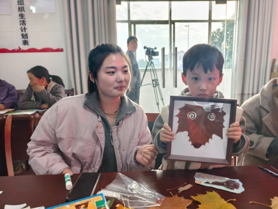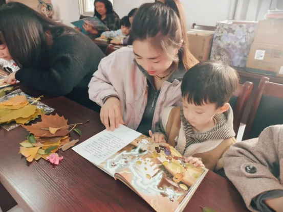 在随后的亲子共读环节,家长与孩子们依偎在一起,共同翻阅精选绘本,共享温馨的阅读时光。孩子们还在志愿者带领下,利用活动前自己捡的落叶,动手制作《叶子创意画》,将阅读中的感悟与想象化为具象的艺术作品,不仅强化了活动记忆点,也让阅读与创造紧密结合。