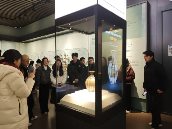 第三站走进蚌埠市博物馆。从现代产业前沿步入历史长河,学子们在珍贵的文物典藏与历史叙事中,溯源蚌埠从古渡口到工业重镇的文明脉络。深厚的历史文化底蕴与鲜明的工业文明特色交织呈现,不仅加深了大家对城市根脉的认知,更在古今对照中,体会到今日蚌埠产业腾飞所积淀的独特精神基因,增强了情感认同与文化自信。