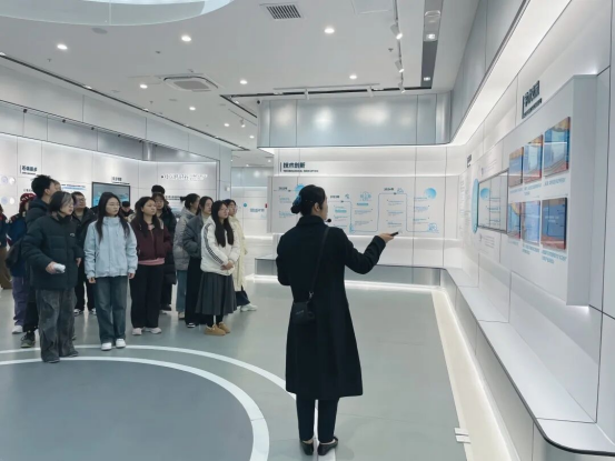 随后,大家来到蚌埠市创新馆。这里集中展示了蚌埠作为国家创新型城市的科创蓝图与核心成果。从“硅基”“生物基”双轮驱动的产业体系,到智能传感器、高端装备制造等新兴领域的突破,丰富的模型、实物与多媒体演示,让学子们沉浸式领略了蚌埠以科技创新驱动产业升级、塑造发展新动能的宏伟实践与澎湃活力。