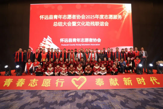 为深入学习宣传贯彻习近平新时代中国特色社会主义思想和党的二十届四中全会精神,弘扬“奉献、友爱、互助、进步”的志愿精神,促进青年志愿服务工作提质增效,树立先进典型,凝聚榜样力量。2026年1月31日,怀远县青年志愿者协会在怀远县长九国际大酒店顺利举办2025年度志愿服务总结大会暨文化助残联谊会。