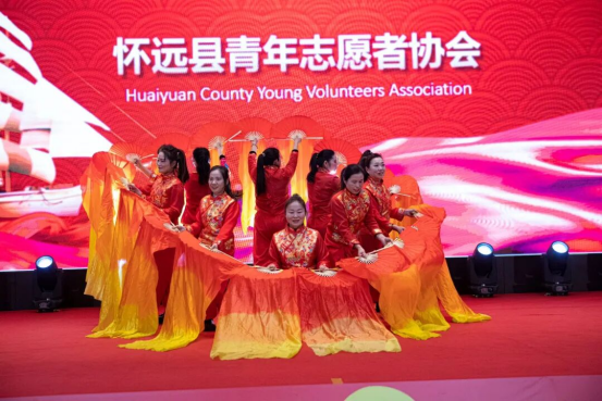在这场精彩纷呈的文艺演出中,首先由热情洋溢的舞蹈《中华龙舞起来》拉开序幕,紧接着一曲饱含深情的歌曲《我们的祖国歌甜花香》响彻会场,表达了对伟大祖国的无限热爱。随后,语言类节目《年俗里的中国》以生动的形式展现了中国传统节日的独特魅力,哑剧《智能钱包》则通过演员们精湛的肢体语言,讲述了一个关于科技进步与人性温暖的故事,引得现场观众笑声连连。歌曲《发热》以其激昂的旋律和励志的歌词,激发了在场每一个人心中的正能量。而《剪出一个大中华》这一创意十足的语言类表演,巧妙地将剪纸艺术与国家发展相结合,令人耳目一新。小品《伽妃传》以幽默诙谐的方式重新演绎历史故事,让人捧腹之余也引发了思考。舞蹈《拜新年》用欢快的节奏传递出对未来的美好祝愿,歌曲《绣红旗红梅赞》则是一首充满革命情怀的经典之作,唤起了大家对于那段峥嵘岁月的记忆。三句半《喜乐三句半串烧》以其独特的表演形式,为晚会增添了更多的乐趣。朗诵《纸马》带领听众走进了一段温馨而又略带忧伤的故事里,川剧《变脸》更是将整场晚会推向高潮,展示了中国传统文化的魅力。最后,在葫芦丝独奏《荷塘月色》悠扬婉转的旋律中,晚会渐渐接近尾声。全体怀远县青年志愿者协会成员共同演唱了《让世界充满爱》,用歌声传递着爱与希望,呼吁社会各界携手共创更加美好的明天。