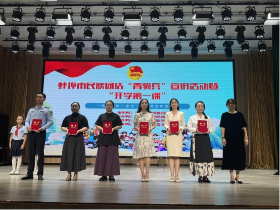 为学习贯彻习近平总书记关于加强和改进民族工作的重要思想,有形有感有效铸牢中华民族共同体意识,9月4日上午,蚌埠市民族团结“青骑兵”示范性宣讲活动暨“开学第一课”在蚌埠市新元实验小学和学海路学校举行。本次活动由市委统战部指导,团市委主办,团龙子湖区委承办,蚌埠市新元实验小学、蚌埠市学海路学校协办。团市委副书记蒋晓妍出席活动,团市委联络部、团龙子湖区委、协办学校相关负责同志及部分师生代表共计300余人参加此次活动。