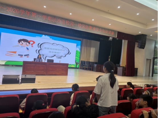 为了让同学们更好地掌握应对校园霸凌的方法,吴雅如与同学们展开了热烈的互动。同学们纷纷举手提问,分享自己在生活中遇到的困惑,吴雅如一一耐心解答,给出专业的建议。同时,吴雅如还鼓励同学们在面对霸凌时,要勇敢地说“不”,第一时间向老师、家长或警方求助,绝不能忍气吞声;而作为旁观者,也不应冷漠围观,要及时伸出援手,共同抵制校园霸凌行为。