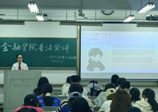 为增强辖区高校青年学子的法律意识,营造良好的校园法治氛围,9月23日晚,团龙子湖区委联合区人民法院、安财金融学院开展了普法宣讲活动,为120余名青年学子送上了一堂生动的“法治课”。区12355服务团成员、区人民法院王胜男法官凭借专业的法律知识和丰富的实践经验,围绕“何为‘帮信罪’”这一主题展开深入讲解。