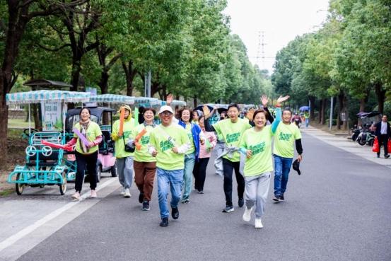 活动现场,参与者们早早集结到龙子湖东公园渔人码头主舞台前签到,并在专业人士的带领下进行热身,现场气氛迅速升温。随后,以“沉浸式健康体验”为核心特色的欢乐跑正式起跑,队伍沿龙子湖步道有序行进,大家在享受跑步带来的畅快的同时,近距离感受龙子湖的生态之美,现场欢声笑语不断。