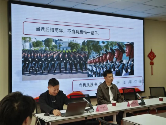 随后,陆卫词老师和沈石哲老师结合本校实际,围绕“从学校当兵入伍的条件”与“专属优惠政策”展开讲解。明确列出毕业生入伍的年龄、学历、身体条件等核心要求,重点强调金融学院针对参军学生的“学业衔接保障”——如保留学籍、弹性修业年限、入伍期间课程成绩认定等措施;同时详细解读国家层面的学费补偿、助学金减免政策,让青年学子清晰了解从学校入伍的便利与福利。
