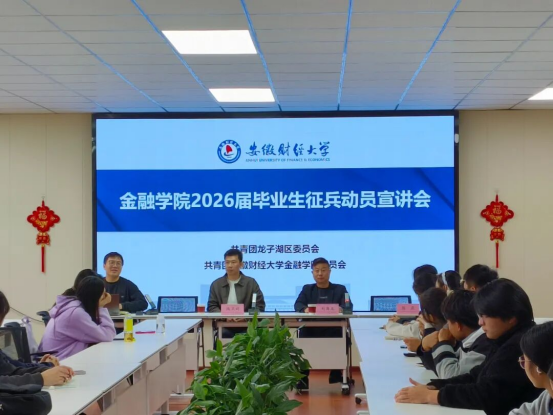 为进一步激发2026届毕业生参军报国热情,帮助青年学子明晰征兵政策、规划军旅路径,10月29日下午,团龙子湖区委联合安财金融学院团委举办2026届毕业生征兵动员宣讲会。龙子湖区直机关团工委副书记、区退役军人事务局业务骨干刘海龙、安财校学生处学生资助管理中心陆卫词老师担任主讲嘉宾,金融学院团委副书记沈石哲主持会议,2026届60余名毕业生到场参会。