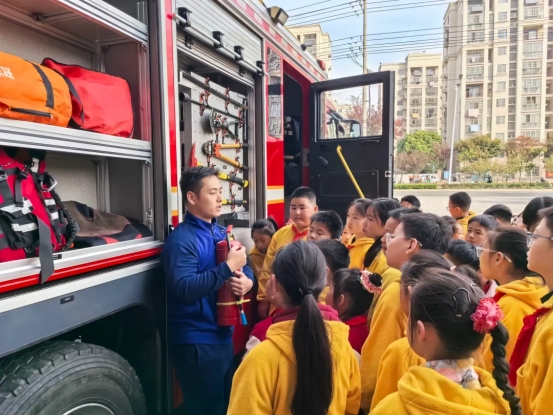 11月4日,铁二小的队员们参观蚌山区燕山消防站,认真聆听消防员讲解消防器材,学会了使用灭火器。