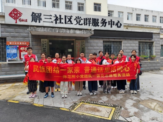 本学期,红领巾志愿者们还走出校园开展校外志愿服务活动:他们走向街头开展普通话推广行动,向居民发放资料,细致讲解普通话与民族团结的重要意义,用真诚宣讲播撒文明种子