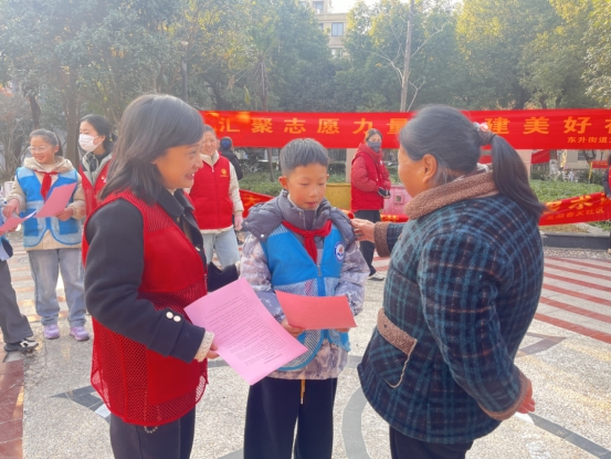 活动现场,党员教师带头化身“安全宣讲员”,结合真实案例细致讲解家庭用火用电规范、灭火器操作方法及火灾逃生技巧,互动问答间让安全知识入脑入心;共青团员们主动担当,协助发放宣传资料、解答居民疑问,成为志愿服务的坚实桥梁;少先队员们活力满满,以童真视角分享情绪调节、亲子沟通等心理健康小贴士,稚嫩的声音传递着温暖与正能量。