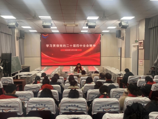 为深入学习贯彻党的二十届四中全会精神,将全会部署转化为少先队立德树人的生动实践,提升少先队辅导员的思想引领能力与专业育人水平,12月12日上午,蚌埠师范附属小学组织全体中队辅导员开展专题培训,大队辅导员刘振娜老师以“深学全会精神 共育时代新人”为主题作培训讲话。