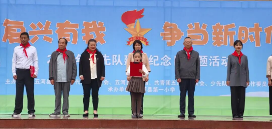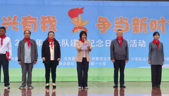 新队员代表在发言中表示,将珍惜荣誉、努力学习、争做新时代好少年。随后,五河县第一小学校党支部书记、校长,少工委主任沈思忠向新队员提出希望与要求,鼓励他们勤奋学习、全面发展,努力成长为祖国的合格建设者和可靠接班人。