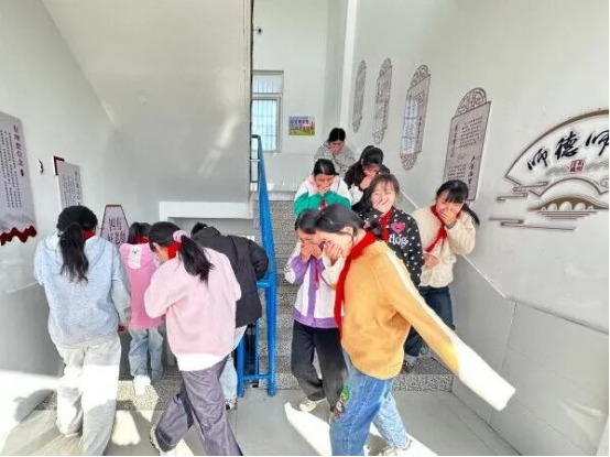 11月5日上午,校园内首先响起急促的消防警报,消防应急演练正式拉开帷幕。接到疏散指令后,各班级教师迅速组织学生用湿毛巾捂住口鼻、弯腰低姿,沿着安全通道快速撤离;安全员在楼梯拐角、楼门口等关键点位疏导秩序,避免拥挤碰撞。
