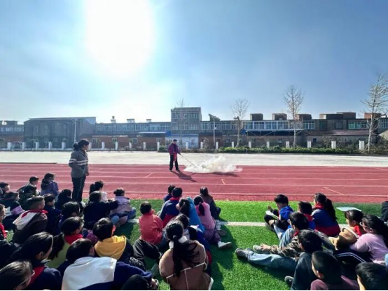 从警报响起至全体师生在操场安全集结,疏散过程紧张有序、规范高效。集结后,学校安全负责老师结合演练细节,讲解了火场逃生的核心要点,现场演示了干粉灭火器“提、拔、握、压”的操作步骤,并组织教师、学生代表上台实操,亲手扑灭模拟火点,让“灭火技能”从课本走进现实。