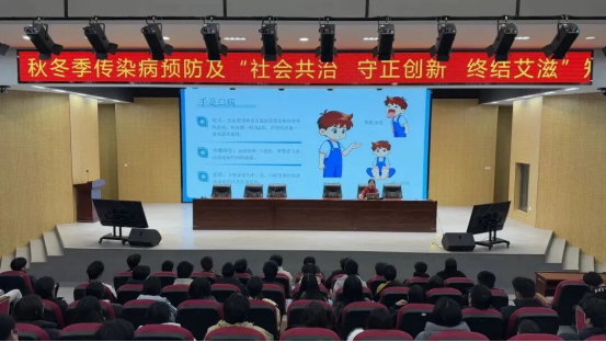为切实预防秋冬季传染病特别是甲流和艾滋病的防治,创建平安和谐校园,11月26日下午,团县委、县少工委、县教育局联合五河县职业技术学校开展秋冬季传染病预防及“社会共治 守正创新 终结艾滋”知识讲座。校学生代表近三百人聆听了讲座。