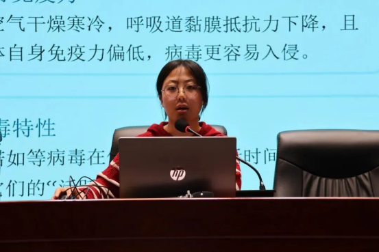 王老师在讲座中从“为什么秋冬季传染病高发”“常见的传染病有哪些”“怎么预防”“万一感染了怎么办”四个方面,详尽介绍了如何筑好健康“防护墙”。王老师从身边发生的实例入手,对常见传染病的预防进行全面分析和提出具体有效的措施,特别提到当前甲流肆虐该如何应对,以及校园内预防艾滋病不仅仅是当作话题来看待,而是严肃对待,要树立正确的恋爱观,拥有科学的性知识,让校园终结艾滋!王老师的讲座科学丰富,有序渐进,案例具体鲜活,语言亲切温馨,深深打动每一位听众,台下不时爆发热烈掌声。